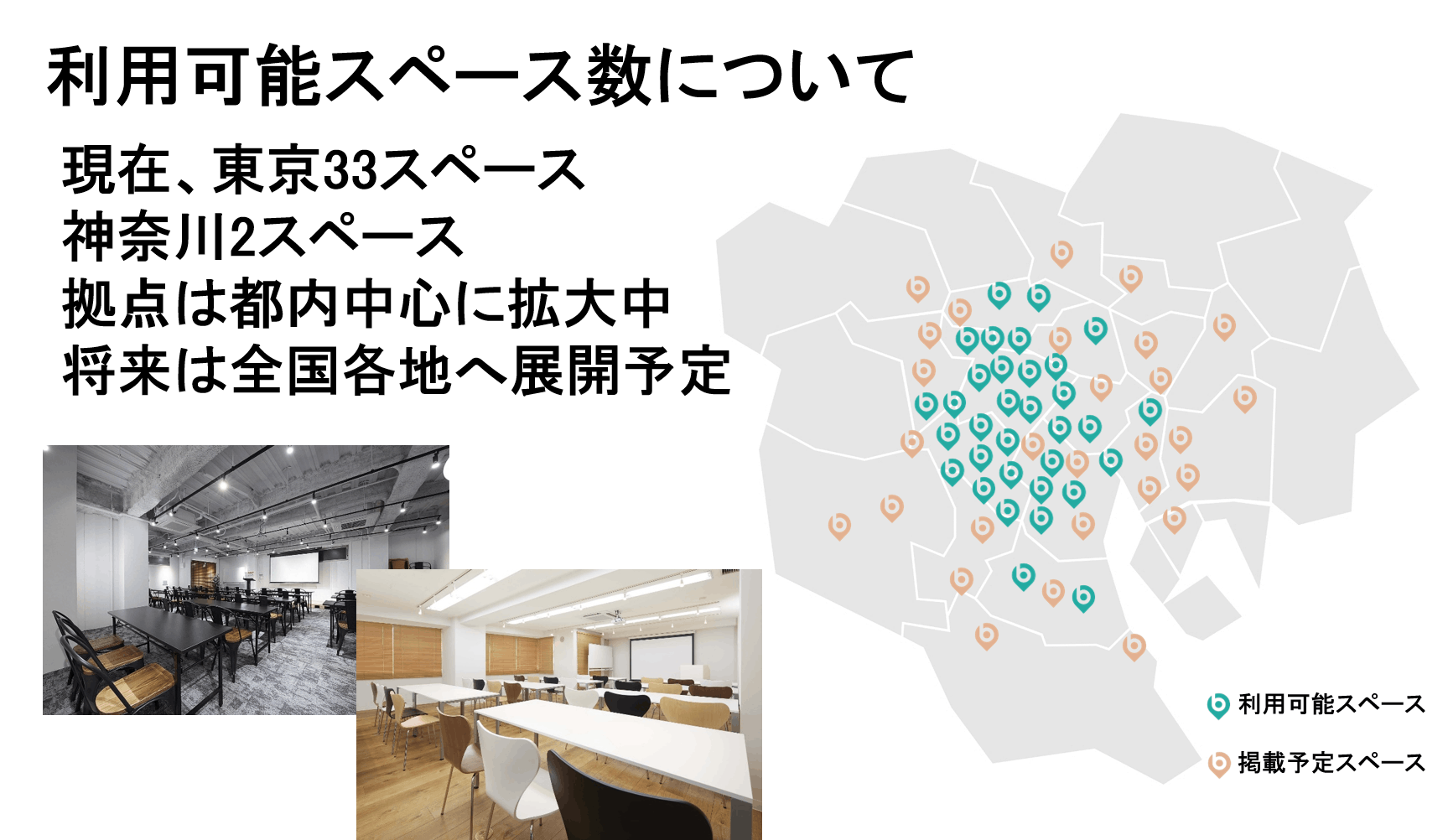 貸し会議室・パーティスペース等のレンタルスペースのマッチングサービスを展開する中で、人を集めて開催する会議やセミナー、飲み会、イベント、撮影などで利用する場所は提供できていたのですが、外出中の隙間時間の作業場所やフリーランスのように外で仕事をする人が快適に仕事ができるワークスペースがなくて困っているという声を多数いただきました。