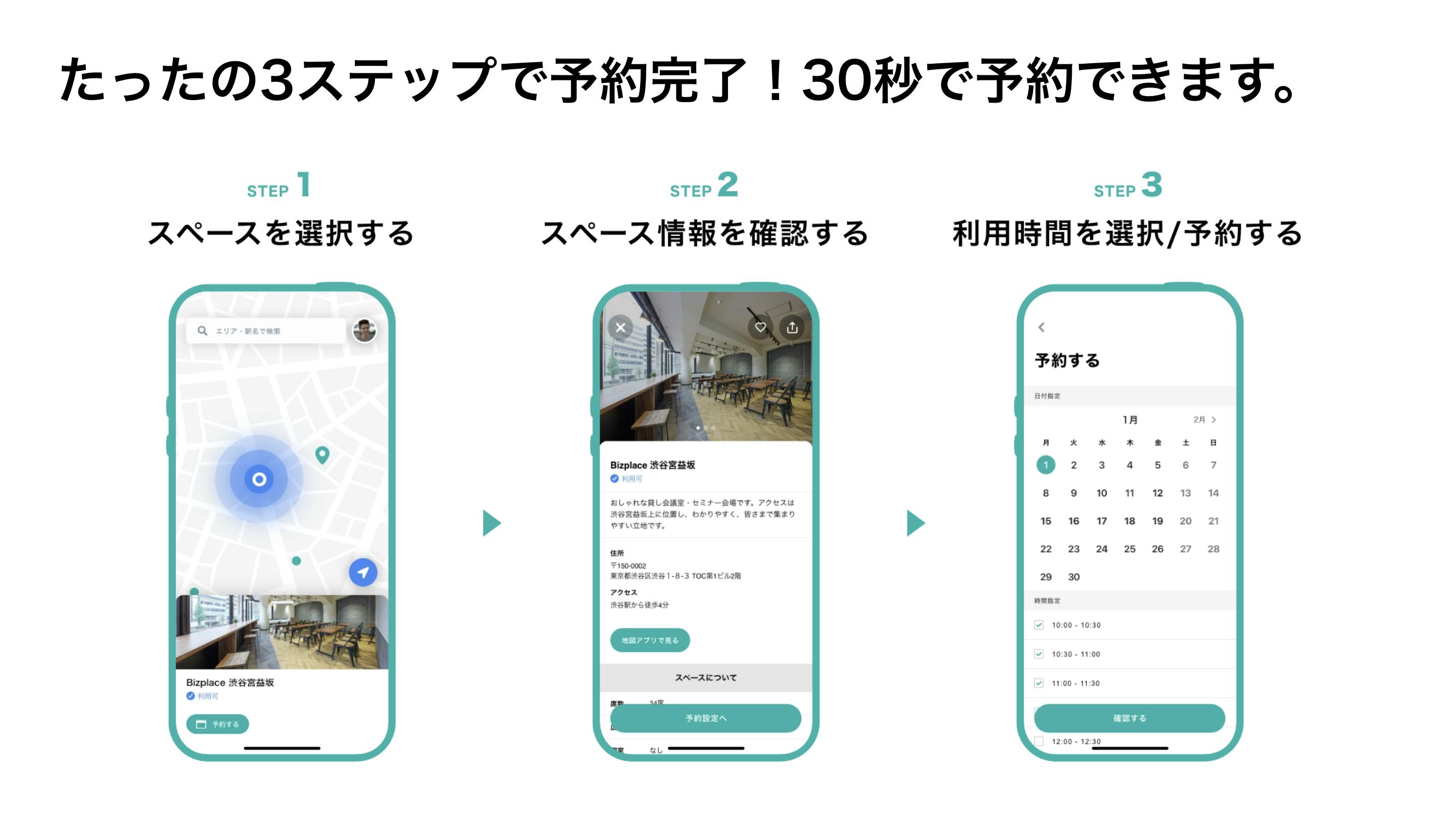 ◆いますぐ使えるワークスペースが30秒で予約できる