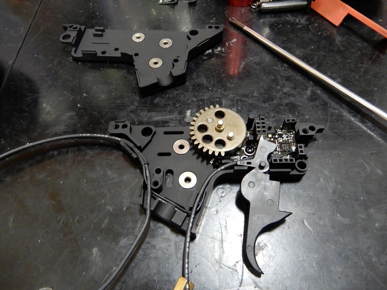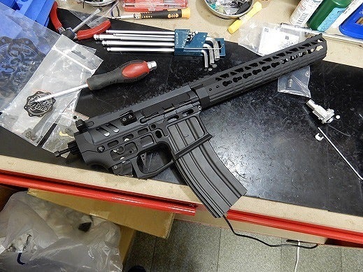 ↑ 持込のS&T M249にTITANを入れセミを撃てるようにチューニング致しました。