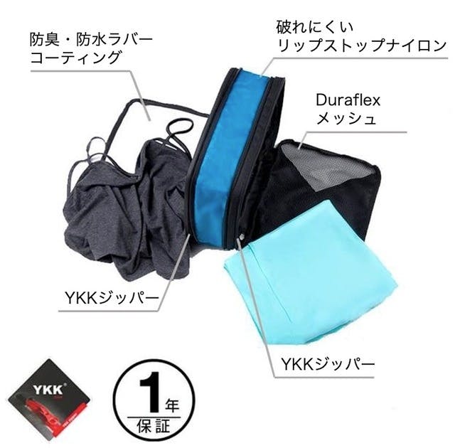 しかも、カバー側は防臭、防水コーティング付き。使用済みの衣類、ジムやランニングの後など、汗で濡れたものも気にせず入れられます。正規のYKKジッパー採用で丈夫さも折り紙付き。