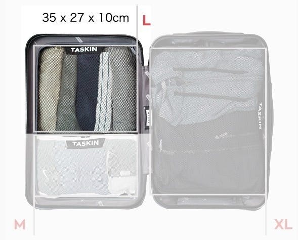※入れ方や素材により圧縮効果は異なりますので、後半の圧縮のコツを確認いただき、快適な旅をお楽しみください。