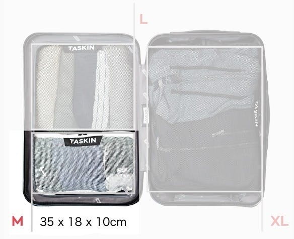 Mサイズは、下着、靴下の小型サイズに最適です。季節にもよりますが、3泊分は問題ないでしょう。