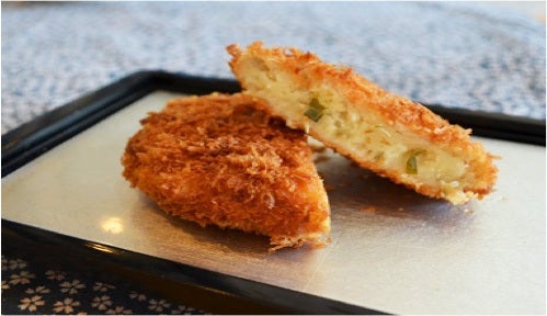 松戸市の地域ブランド矢切ネギを使用し和菓子屋ならではの製法(白あんを入れる)で矢切ネギコロッケを創作しました。