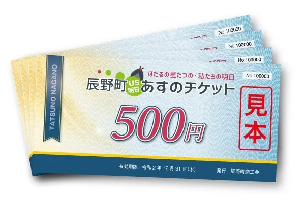 今回、辰野町あすのプロジェクトの一環として、飲食店・宿泊施設限定プレミアム付利用券「辰野町あすのチケット」発行事業を行います。単に飲食店・宿泊施設をご利用いただくというだけでなく、皆様がその場所で、笑顔で過ごせる時間を提供させていただきたい、取り戻したいという強い思いがあります。辰野町民の方、辰野町生まれの方、辰野町が好きな方など辰野町に関わるすべての方、どうかわれわれに力を貸していただけないでしょうか。個人・企業・団体の区別に関わりなく、多くの方にご支援いただけますと幸いです。