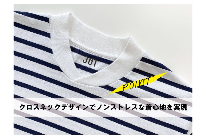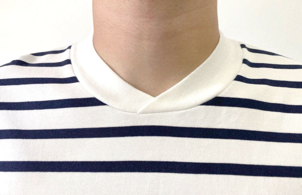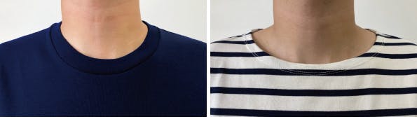 クルーネックやボートネックでは、カジュアルでラフな印象