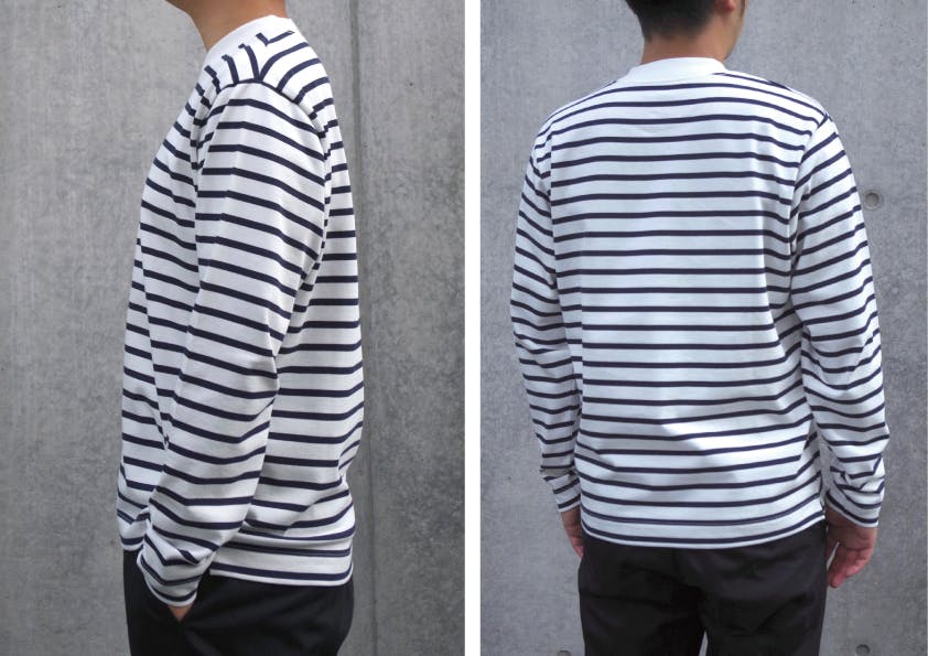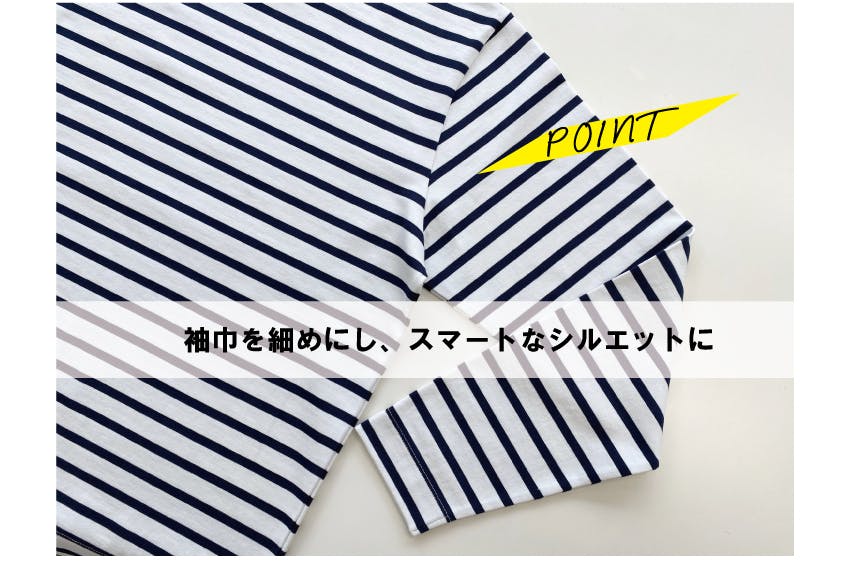 腕まわりに生地がもたつく事もなく、横から見た際もスマートなシルエットです。