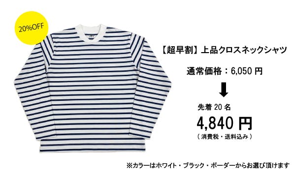 2020/07/13 20:12こんにちは。JOT プロジェクトページをご覧頂き、ありがとうございます。本日は、【上品クロスネックシャツ】をご試着されたい方へ、ご案内をさせて頂きます。JOT 事務所にて、アポイント制でご試着をいただけます。サンプルは、ボーダー/Mサイズのみとなります、ご了承ください。実際に、素材を触って着用し、着心地をお試しにいらして下さい!アポイントは、Instagram DM もしくはお電話にて受付中です。ぜひお気軽にご連絡ください!〒153-0061東京都目黒区中目黒2-5-28 川住ビル3F (中目黒駅から徒歩10分)TEL 03-6846-1923営業時間:平日 11:00〜19:00プロジェクト達成に向けてスタッフ一同、頑張りますので引き続き、皆様の応援を宜しくお願い致します! もっと見る