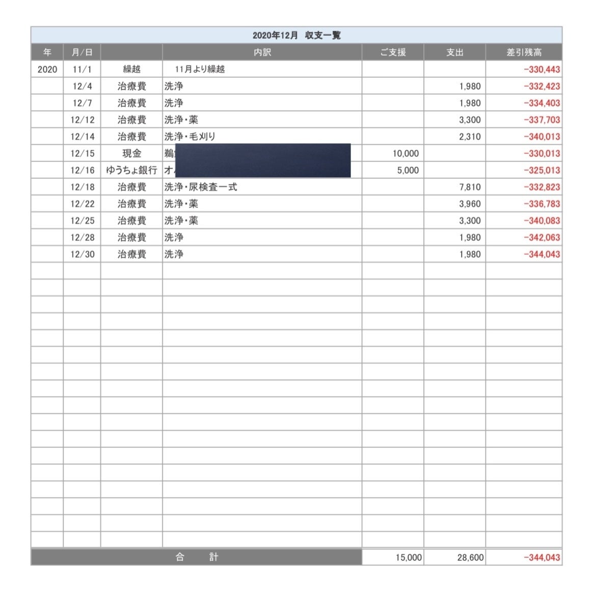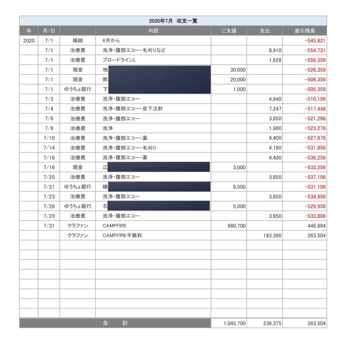 こちらでの収支報告は今回にて完了と致します。