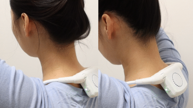 首掛け式なので、前、後、側面までお好きなところに動かして風を送ることができます。