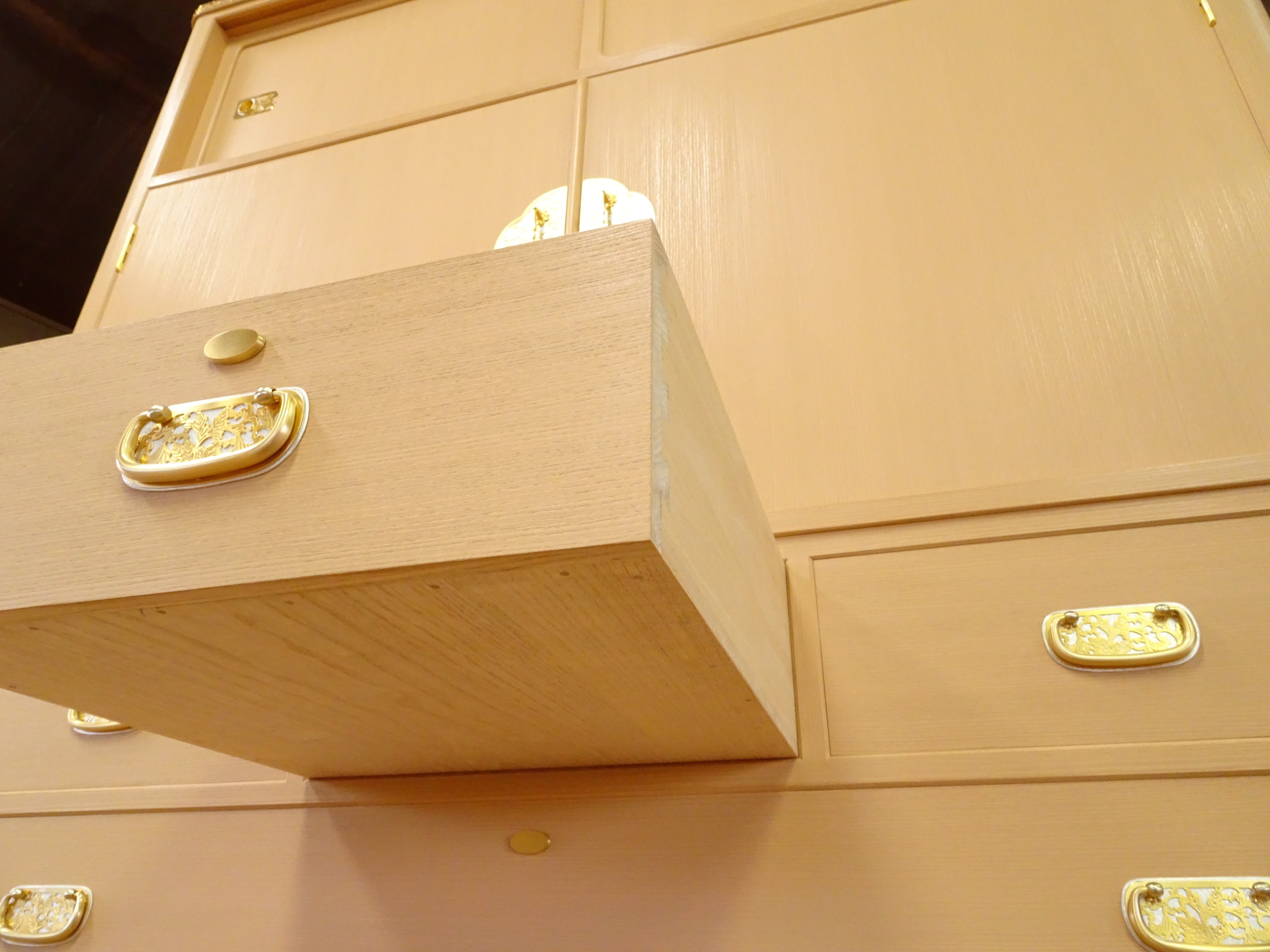 大切なものをよりしっかりと守るため、盗難防止用に、江戸時代から伝統の匠の技としてからくり細工入りの桐箪笥も作られてきました。