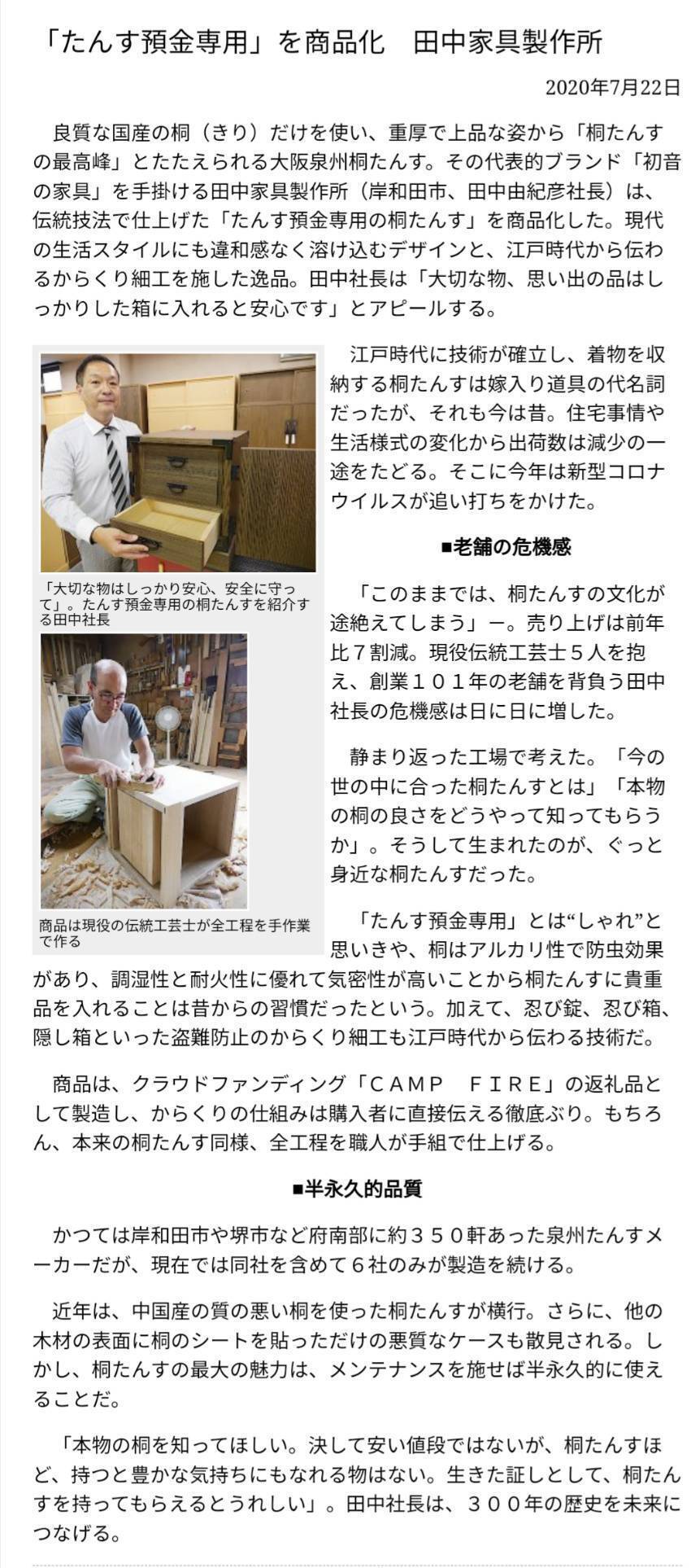 年々桐のたんすに対する関心が薄れゆく現代で、新型コロナウイルスの影響を受けて私どもの手づくりの桐たんすも販売先の休業により注文が減ってしまいました。そんな中、クラウドファンティングで広く大阪の泉州の桐たんすの事を知ってもらい、その伝統を引き継いでいけるよう、皆様のご支援をお願いいたしました。するとこんなにも温かいご支援をいただきまして、誠にありがとうございます。一番 嬉しい事は、ご支援いただいた皆様からの、温かいメッセージがとてもとても励みになりました。職人一同 大変感謝申しあげます。ご支援いただきました方々には、早速 リターンのお品を丁寧にお作りさせていただいて、順次ご発送させていただきます。今回初めての取り組みをさせていただいて、私もすごく勉強させていただきました。この取り組みにアドバイスいただいた、藤原様 高橋様 ありがとうございます。この事は一生忘れないでしょう。今後 また 違う内容でチャレンジさせていただける機会があると思います。もっと多くの日本の方々に、日本の伝統の技法を引き継いだ本物の大切なものを守る事が出来る大阪の泉州の桐箪笥を知っていただけるようにチャレンジしていきます。今回はご支援いただきました皆様 本当にありがとうございました。