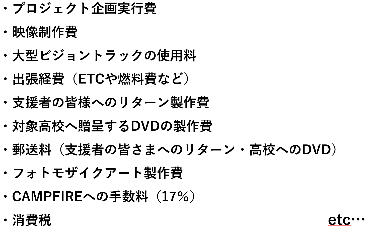 目標金額に満たない場合は、計画を実行できないため、支援金は返金致します。