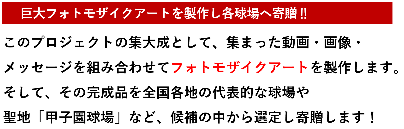 一人よりも二人、二人よりも三人、多くの方々がこの企画に参加して頂ければ、きっと高校球児の笑顔、高校野球ファンの笑顔、そして日本中の人々の笑顔につながると思っております。