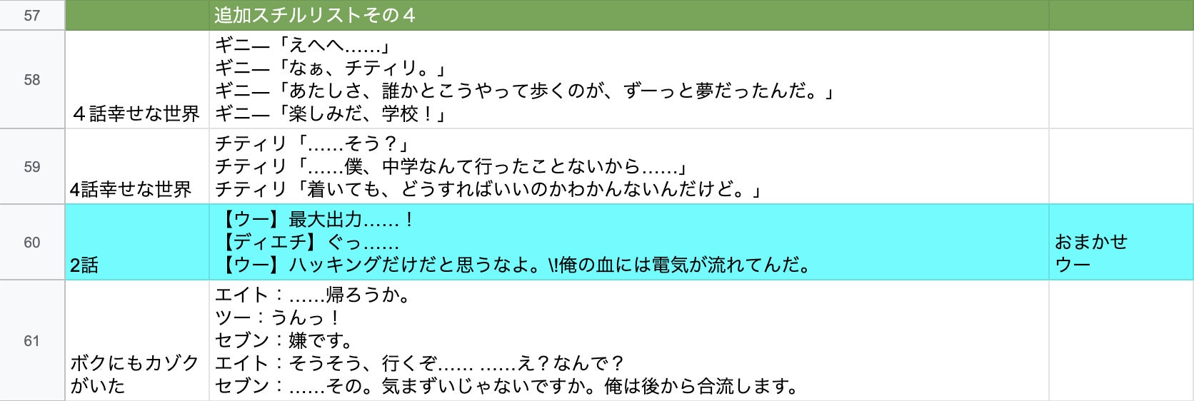 ▼リクエストいただいたシーンのリストです。