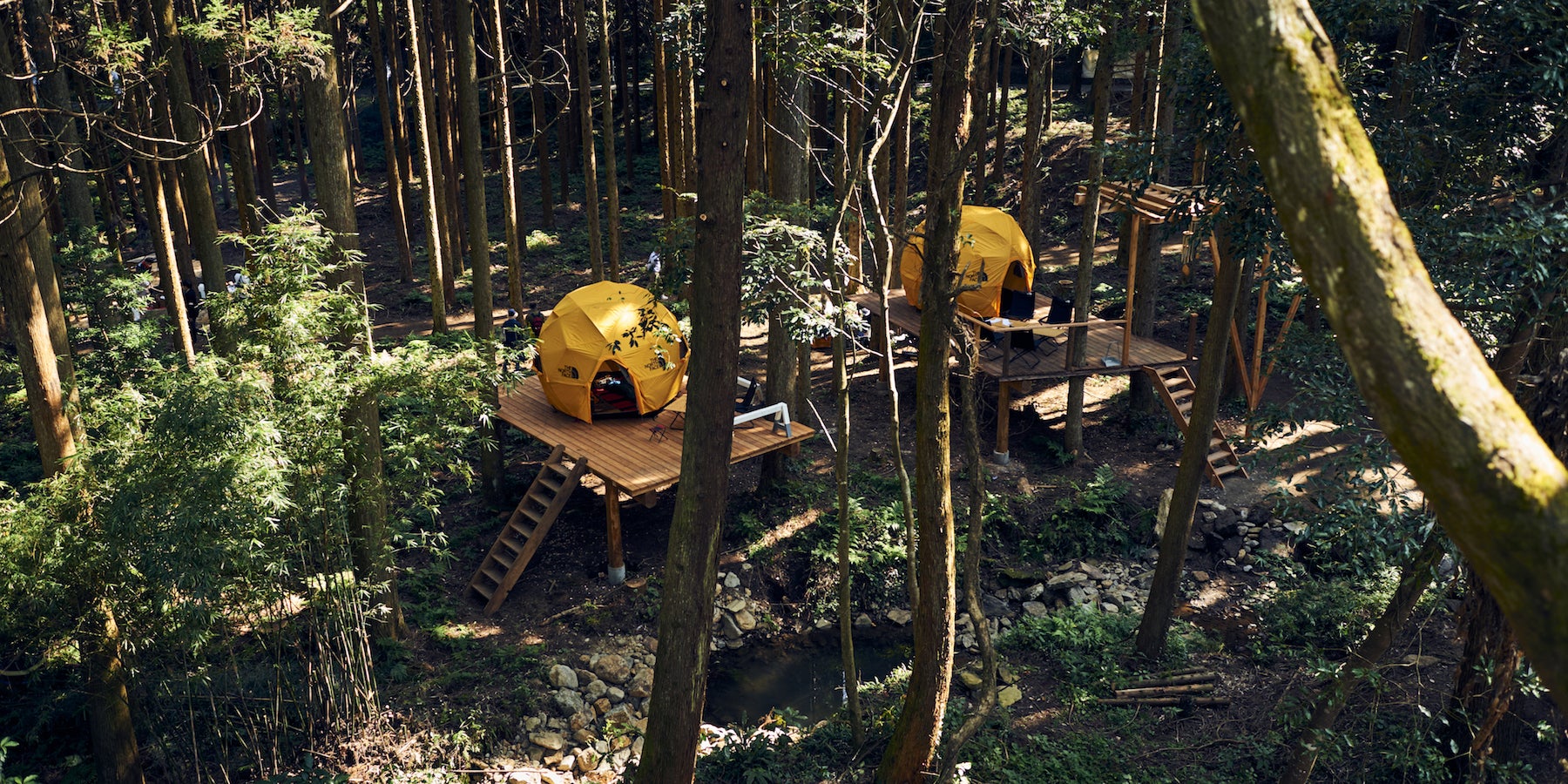 まず最初に森の間伐をし、ツリーキャンプデッキを整備。またトイレなど水回りの改修を行います。