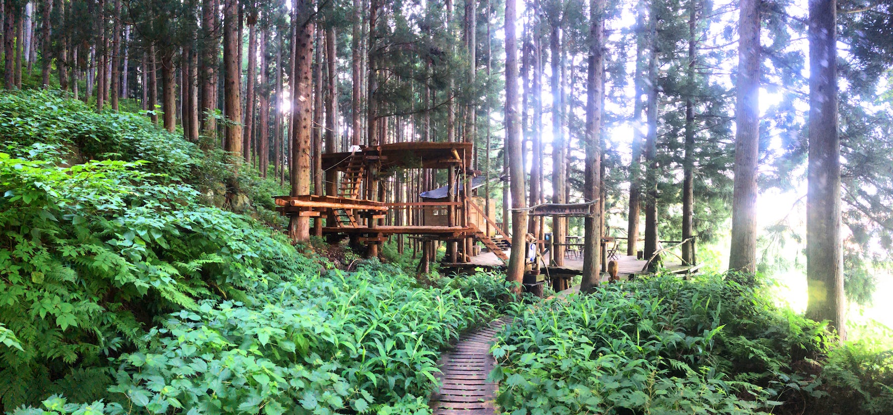 「心の中のトムソーヤは元気かい?」というキャッチフレーズで作られた野沢グリーンフィールド。同じ様な一色単の杉林に佇むウッドデッキのキャンプ場はまさにリバーバンクの森にも同じことができそうな予感がしてすぐに相談。快くプロセスや素材などを提供してくれました。健児くんありがとう!