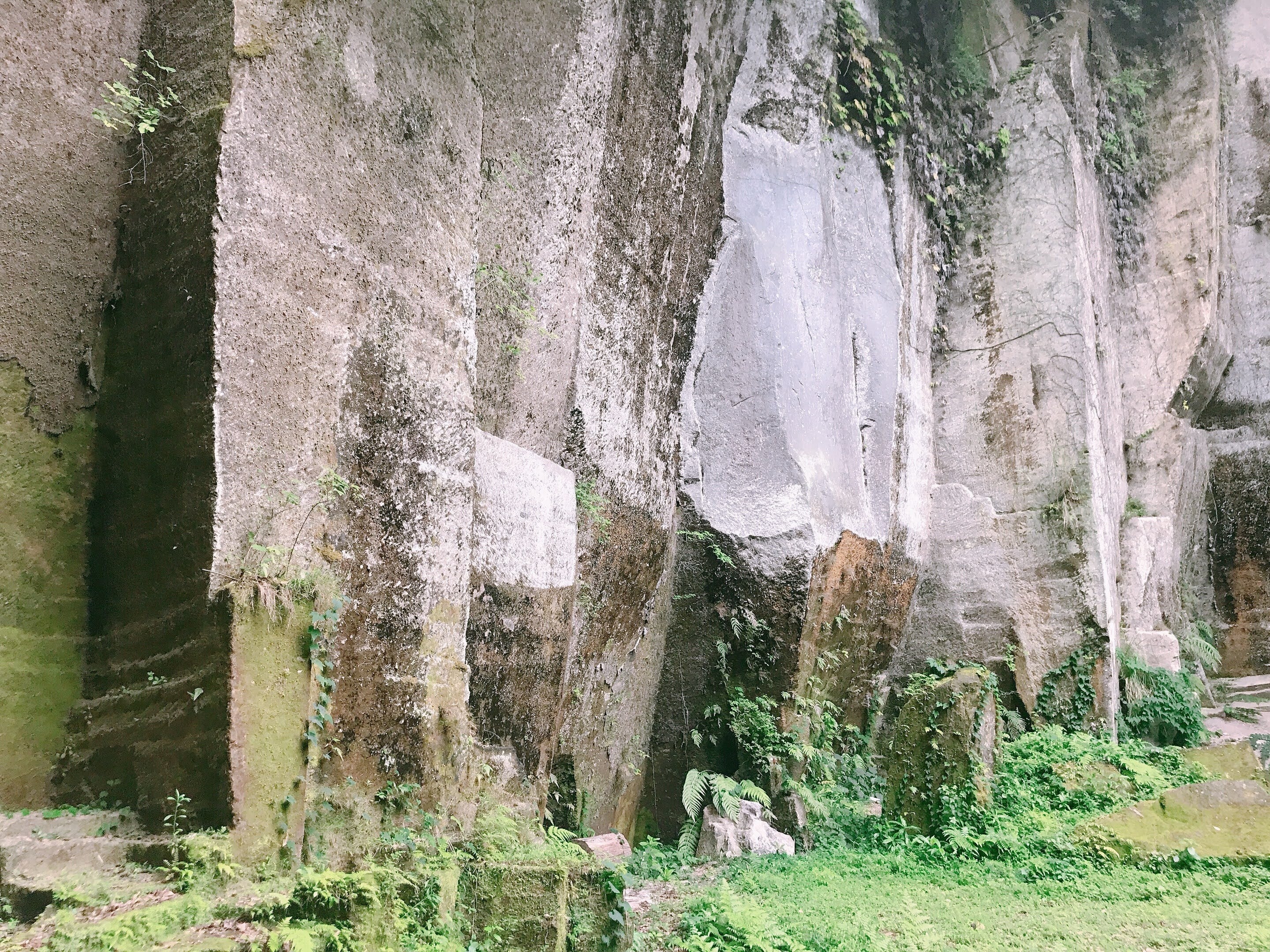 写真は、高田の石切り場と呼ばれる場所です。ここから切り出された石は「高田石」と呼ばれています。(近くで見るともっと迫力満点です)