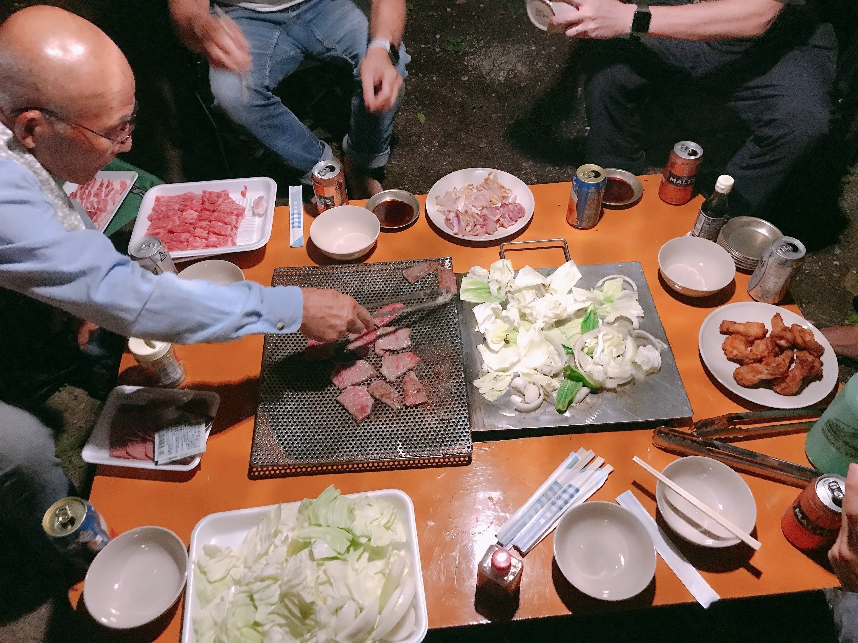 かわなべ牛と鳥刺し、野菜にお酒をみんなで囲みワイワイ語らう。