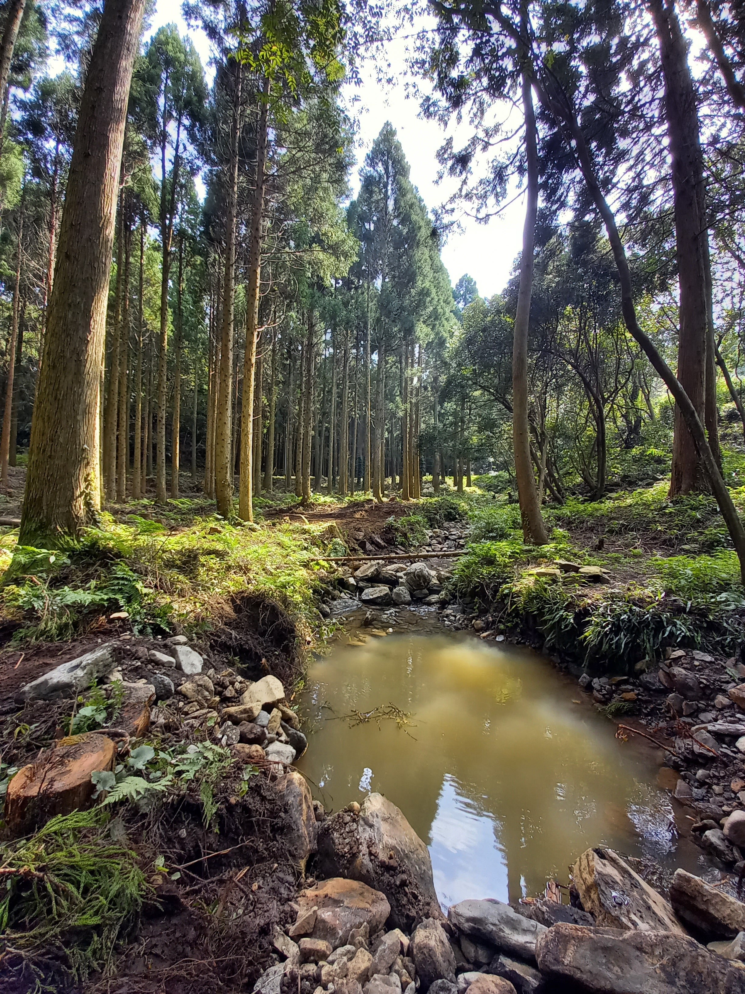 元々足首が浸かる程度の浅い川でしたが少し深く掘ることで天然のプールができております。(掘ったばかりで濁っておりますが...)