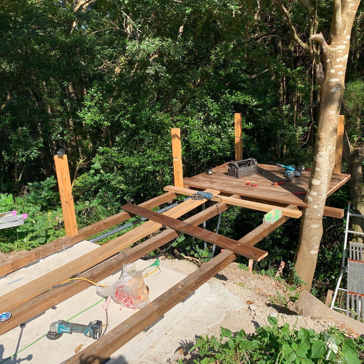 デッキの始まりは森に向かってせり出したデザインでそこから森が一望できます!