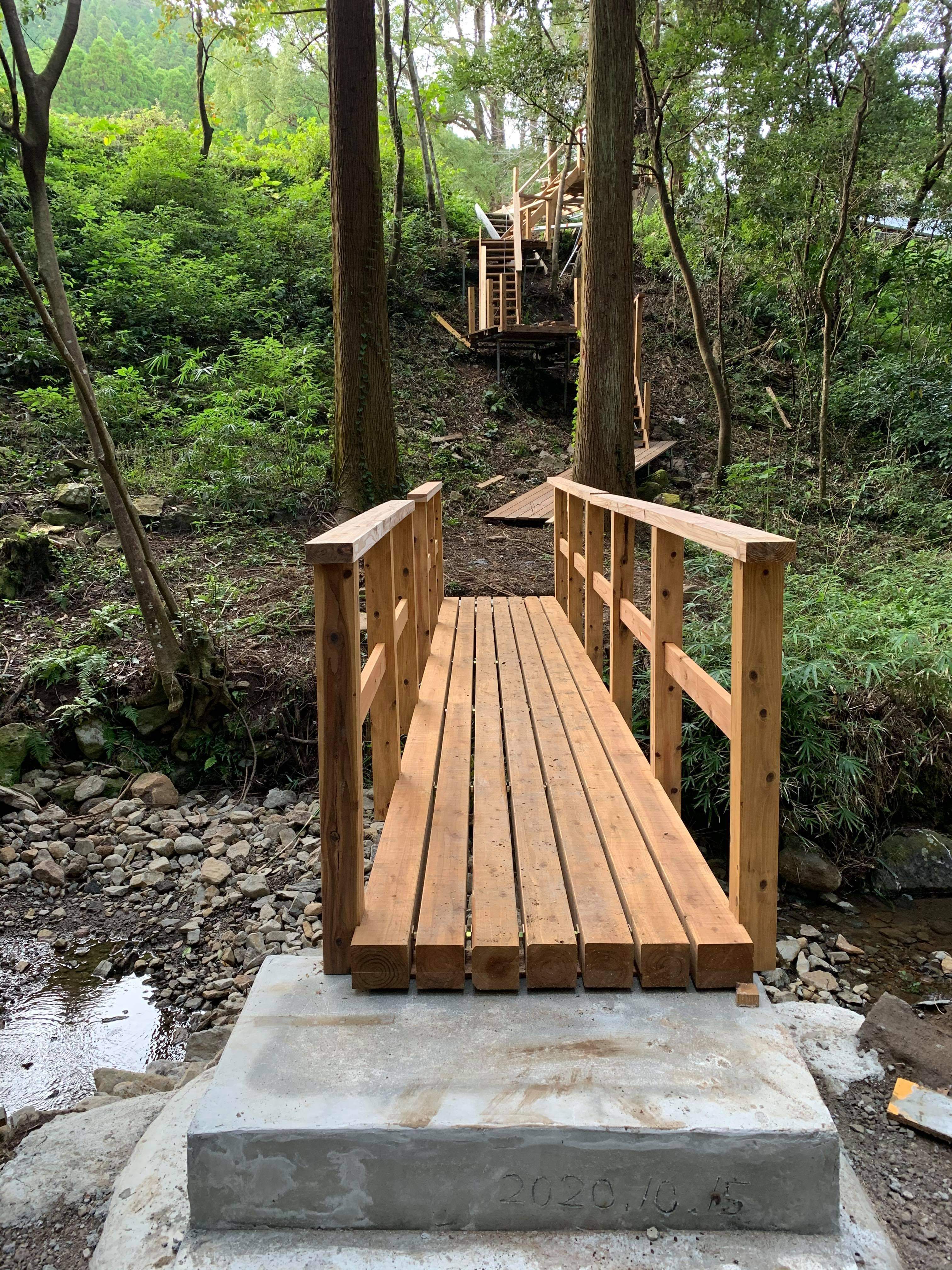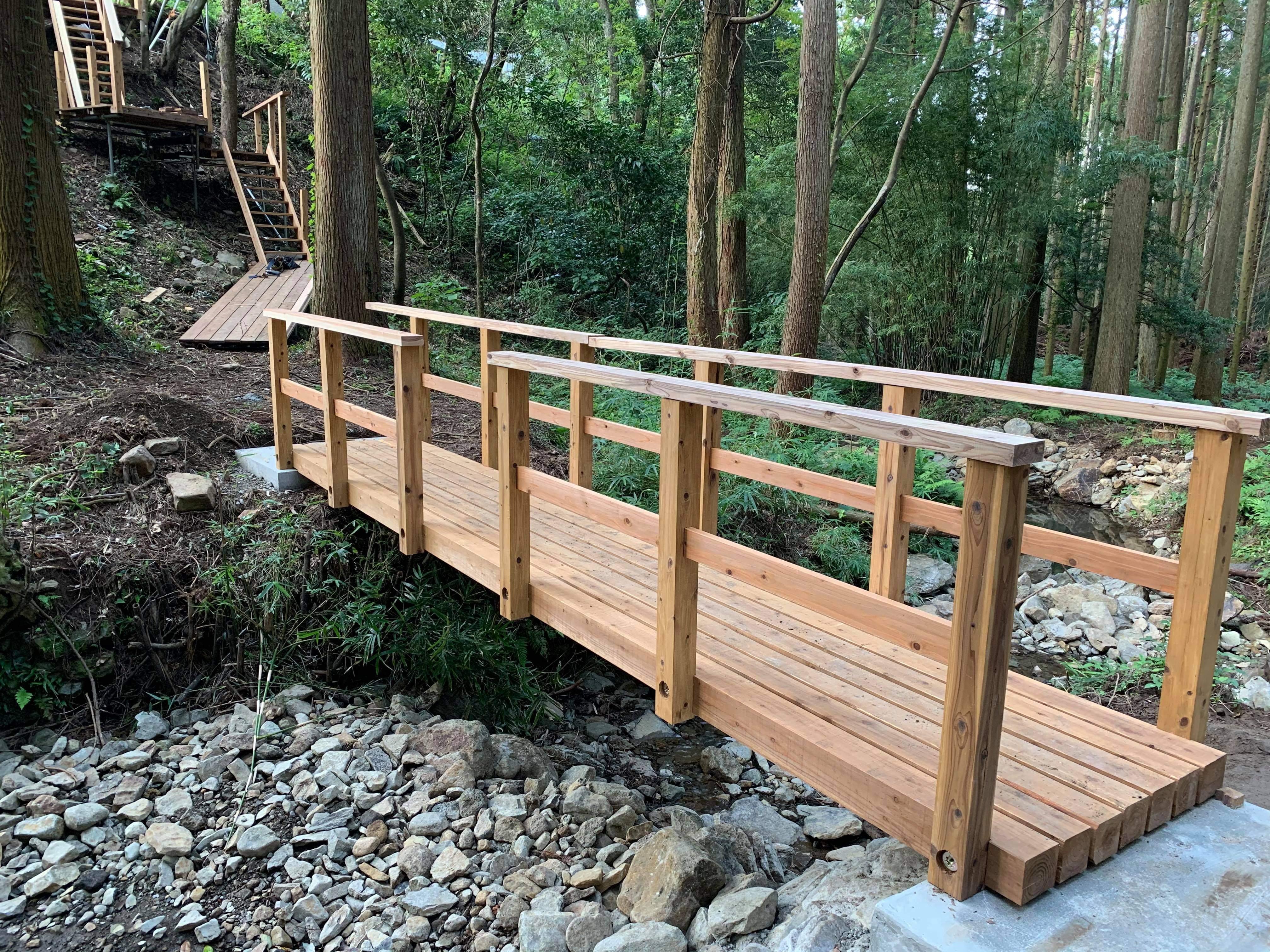 以前の橋はワイルドな丸太橋でした。これなら誰でも安心して通ることができますね!