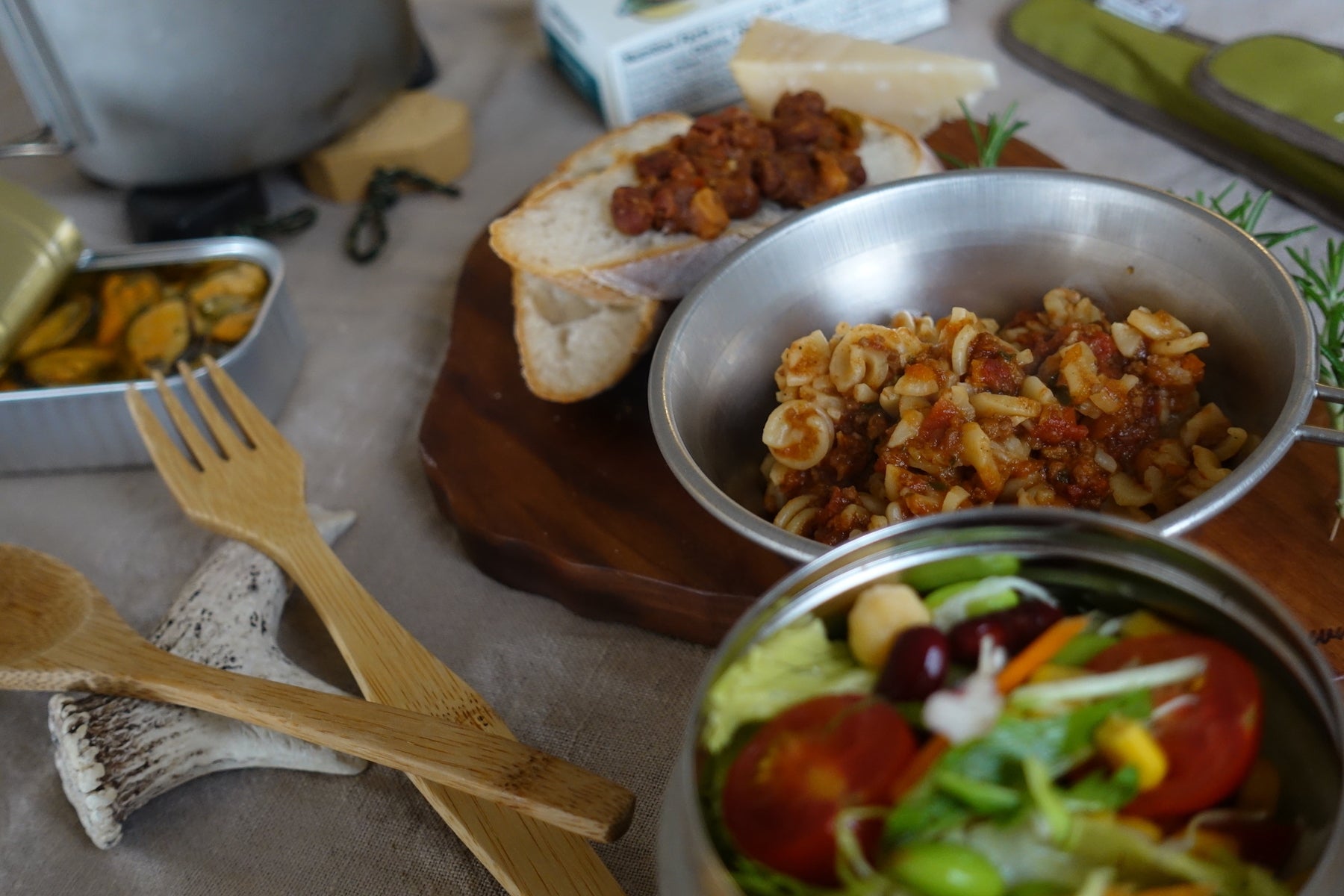 こんにちは!リバーバンク森の学校 管理人の永山です!さて今回はリターンの中にあるリバーバンクのオリジナルグッズ「シエラカップ」のご紹介をしたいと思います!シエラカップといえばアウトドアが好きな方は一個は必ず持っているグッズですよね!その汎用性はとても高く個人的には「何個持ってても良いやつ」に認定されています!(奥さんに怒られるやつです)これ一つで、焼く、煮る、揚げる、ができてしまい直に火にかけられるのも使えるポイントの一つです!素材は現在流通しているものでステンレスとチタンが主流で底の深さや大きさも様々です。シエラカップの歴史元々はアメリカの自然保護団体に本部を置く「Sierra club」によって形になり、その会員にはそのシエラカップを会員証の代わりに配っていたそうです。自然保護の父とも言われているジョン・ミューアも大自然の中でこのカップを使ってコーヒーを飲んだり食事を摂ったりしていたのでしょう。その後、色々な企業がロゴなどを入れ販売することでアウトドアギアとして深く根付いています。最近はアウトドアだけでなく日常使いもしている人が増えたのかなと思います。把手もあって器としても使えますしシエラカップのそこに穴を開けて植物を植えているなんて人もいますよ。時代が変われば使用用途にも幅が出てきますね!簡単オススメレシピ!シエラカップがどんな物かが分かったところで実践レシピをご紹介!今回は、リバーバンク森の学校でもアウトドアクッキングの講師や構内にある畑のディレクションも手がけてくれているみなくちなほこさんにシエラカップで作れる簡単オススメレシピを教えてもらいました!スープパスタ早ゆでショートパスタ(マカロニやペンネ)ミニサラミ(ジャッキーカルパスなど) 2本くらいカップスープの素 1パック塩、こしょう 適量1 シェラカップにお湯を沸かし、ミニサラミとショートパスタを入れて茹でる。2 カップスープの素を入れて塩こしょうで味を調える。*ミニサラミからダシが出ておいしくなります!ちぎって入れるのがおすすめ。速攻雑炊おにぎり 1こ即席味噌汁 1パック卵 1こ1 シェラカップにおにぎりと水を入れて沸かす。2 おにぎりを崩して即席味噌汁を加えて煮る。3 卵を割り入れて混ぜ、火が通ったら完成。クリームおじやおにぎり 1こクリーム系カップスープの素 1パック卵 1こ塩、こしょう1 シェラカップにおにぎりと水を入れて沸かす。2 カップスープの素を加えてよく混ぜて煮る。3 卵を割り入れて混ぜ、火が通ったら塩、こしょうで味を調える。*あれば粉チーズを入れるとおいしいなんでもアヒージョマッシュルーム(しめじや椎茸でも)プチトマトにんにく(潰す)オリーブオイル1 シェラカップに材料全てを入れて煮る。2 適度に火が通ったら出来上がり。*残ったらゆでたパスタに絡めて食べよう!手軽で簡単、すぐ手に入るものでチャチャっとできるのがシエラカップクッキングの魅力です。キャンプの一品料理や夜食にもぴったりの即席メニューを是非お試し下さいね!リバーバンク 森の学校 管理人永山 貴博