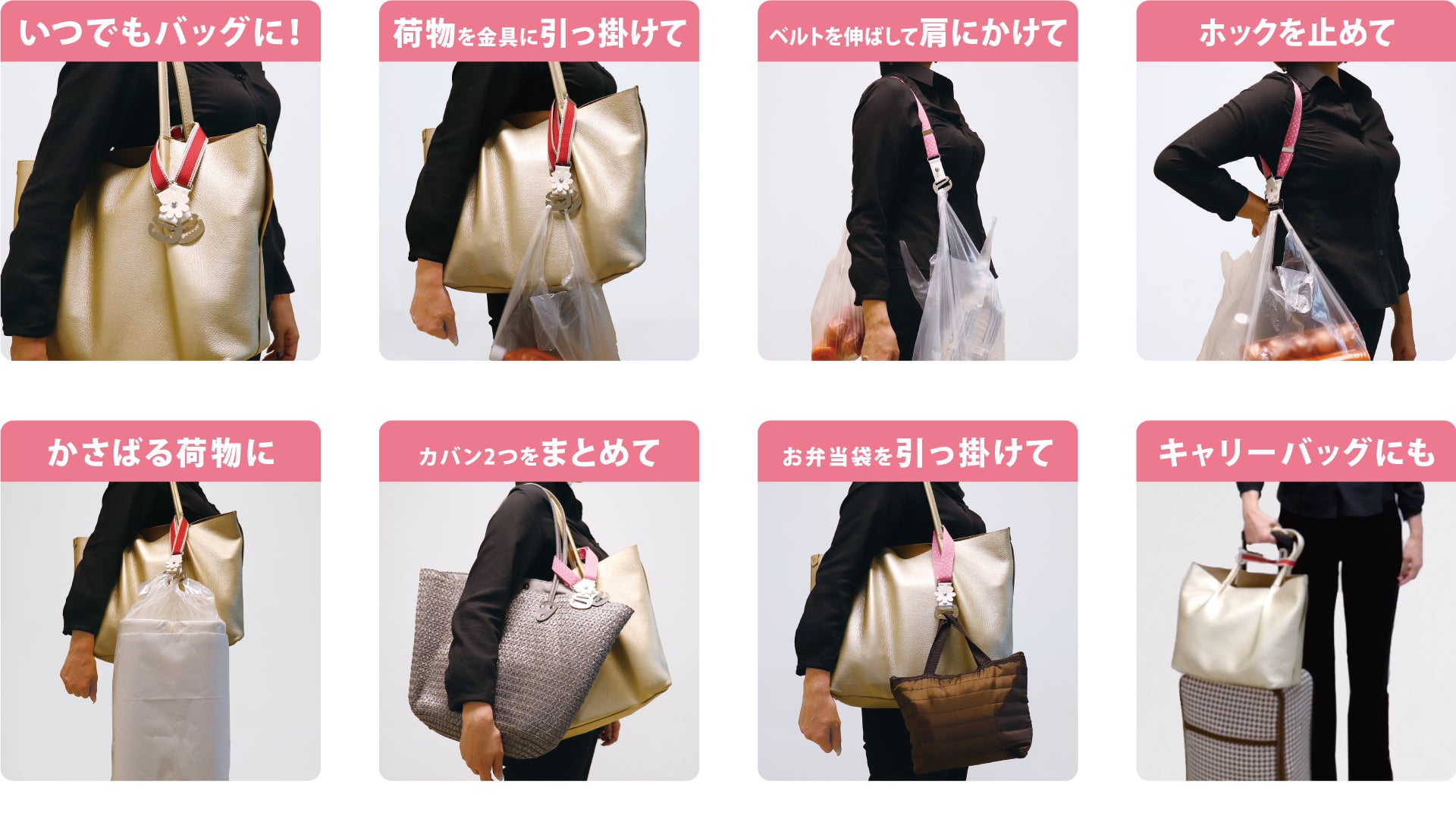 使い方はとっても簡単。金具に荷物を引っ掛けるだけでOK。
