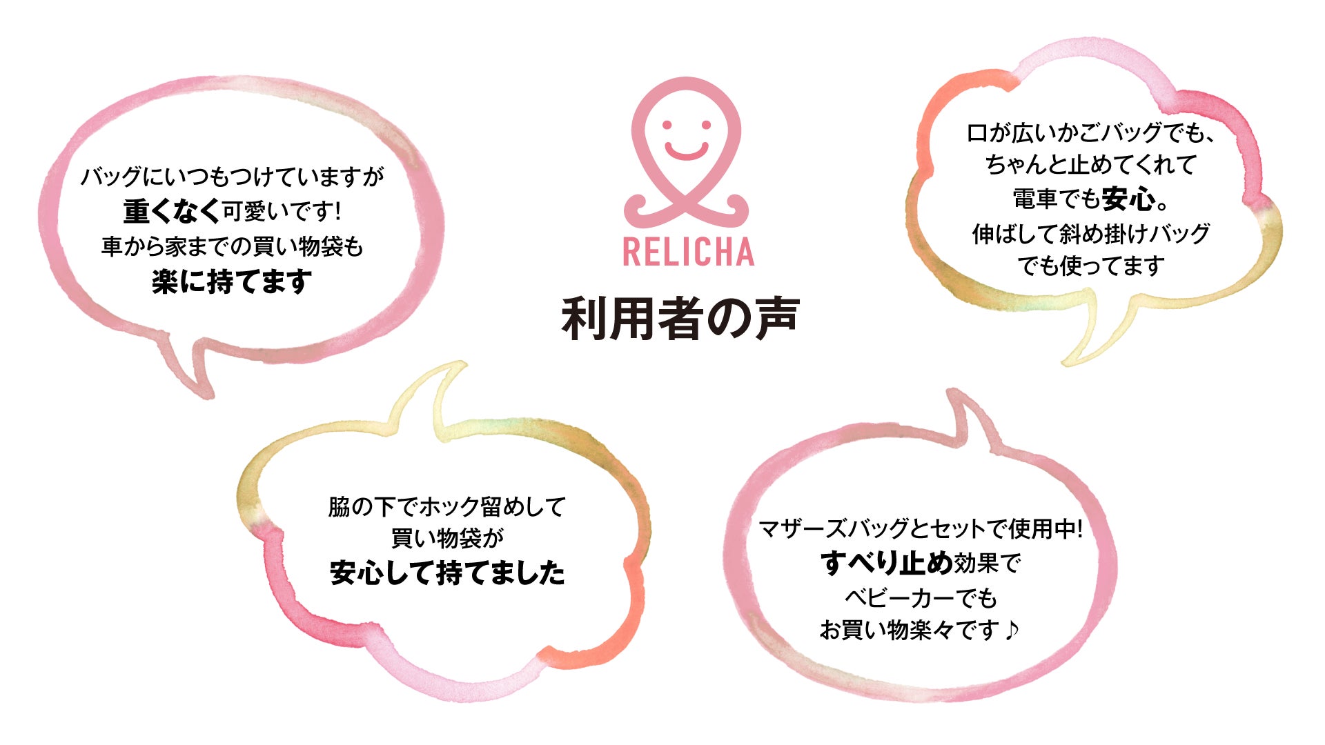 リンパ浮腫でお困りの方だけではなく、お買い物帰りにたくさんの荷物でお困りの方、子育て中、子連れでお買い物に行った時、片手は子供の手を離せない方、杖をお使いの方など、役立つサポートグッズです。お困りの方は、ぜひ「リリチャ」を使ってみてくださいね!