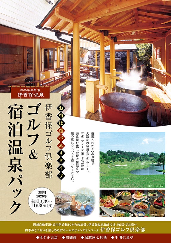 伊香保ゴルフ倶楽部は、厳選された4箇所の温泉宿と提携しており、ゴルフプレーを楽しんだ後は、
