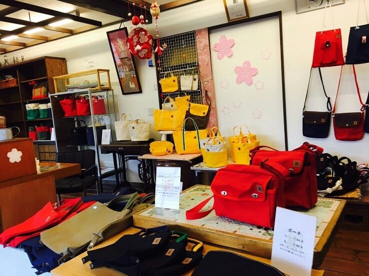 明創業治44年のテント店。テント素材を使って様々なものを作っており、山菜リュックや綿帆布の手作りバックが人気です。オーダー品は1年待ちも!それでも手にしたい逸品です。