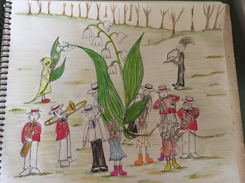 パレードの青写真 スズランとスズランの葉陰にあつまるものたち。