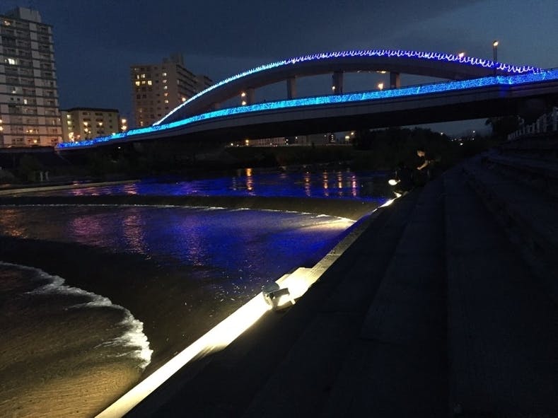 夜の川辺は昼間とは違った顔を持ちます。イルミネーションを点灯することで賑わいを増殖させることも、闇を引き立てロマンチックな静けさもつくり出すことも出来ます。効果的な光の演出は川辺でこそ効果的です。そこは単なるオープンスペースではなく、光と闇の効果を際立てる場所に変わります。