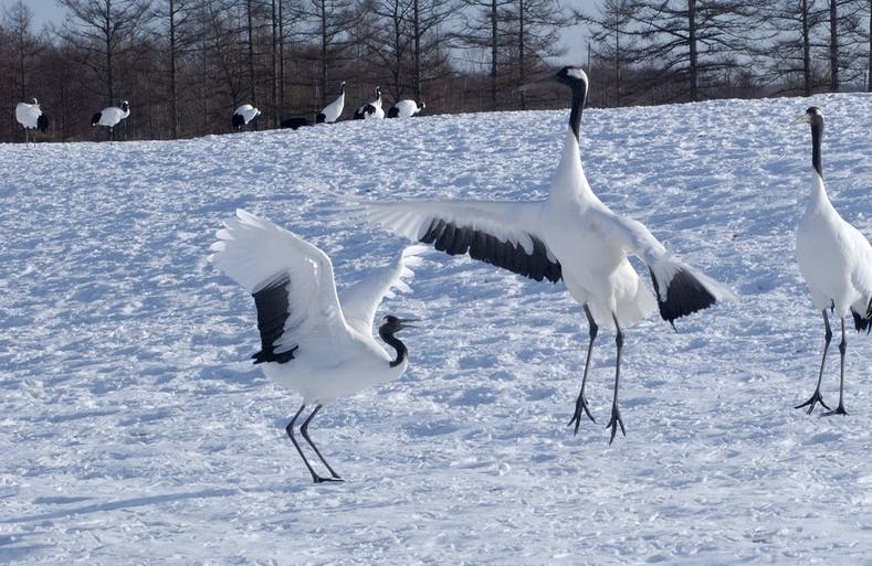 ▲ 冬、雪原に映える丹頂(タンチョウ)は釧路ならではの風景