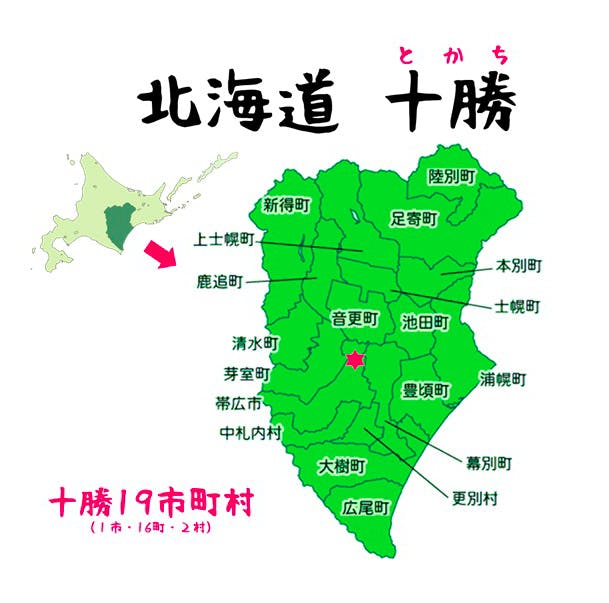 私たちの住む十勝地方は北海道の真ん中あたり。