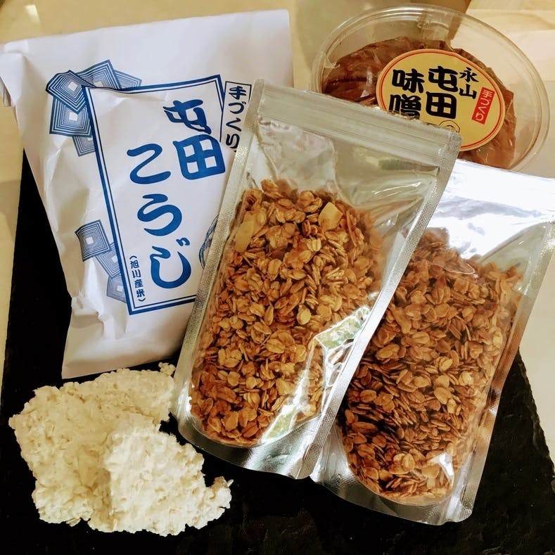 開拓した屯田兵の時代から続くやり方にのっとり、旭川公園のすぐ近くで、味噌や米麹を手づくりする女性たちがいます。その味噌や麹でつくったオリジナルグラノーラや、お味噌汁などを朝食でご紹介します。
