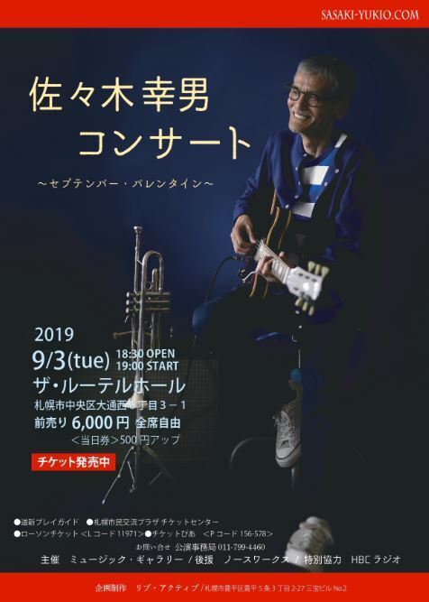 2019/08/16 18:39音楽年鑑1994-2019に出演する佐々木幸男さんが8月17日(土)午後8時30分からのHBCラジオ「シンセンラジオステーション」に出演します。今日はその収録をしてきました。 パーソナリティの松田イッシンさんの大きな声と佐々木幸男さんの静かな声が良いコントラストを出していたそうです。 10月に実施する「北海道音楽年鑑1994-2019」のお話しはもちろん、9月の幸男さんのコンサートの話でも盛り上がったようですよ。 みなさん!明日はぜひHBCラジオを聴いてくださいね! また幸男さんの9月のコンサートについては以下の通りです 佐々木幸男LIVE NEW 日時> 2019年9月21日(土) 開場 17:30 開演 18:30 会場>Holly’s ホーリーズ 帯広市西16条南35丁目2-10 料金> チケット ¥4,000(ドリンク別) 問い合わせ"0155-66-9399 もっと見る