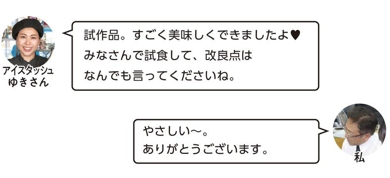 そしてマーケティング部のみなさんが考えてくれたこの2案を元にアイスキャンディーの試作品を作るべくICETACHさんへ