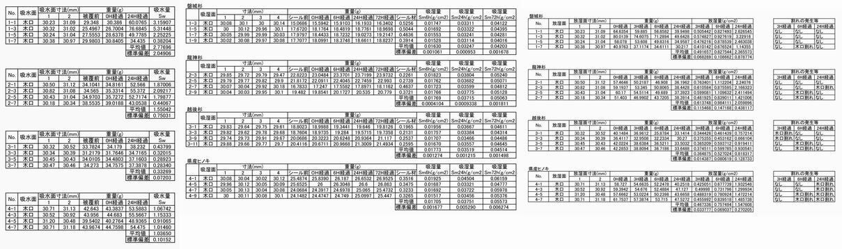 横圧縮、収縮率、密度の各試験では、磐城杉がスポンジのように柔らかいのにスカスカ、しかも伸び縮みして割れにくく劣化しにくい素材であることが分かりました。しかも断トツで。