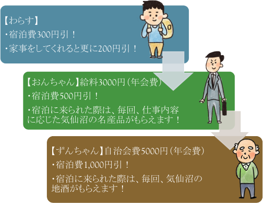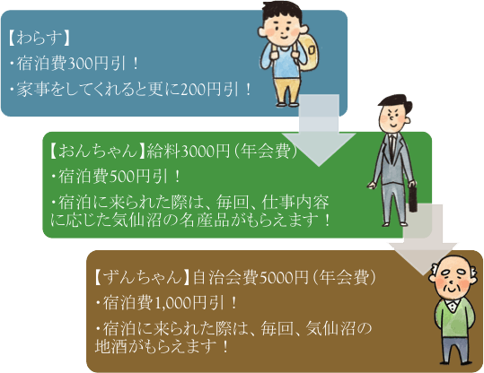 ・宿泊に来られた際は、毎回、仕事内容に応じた気仙沼の名産品がもらえます。