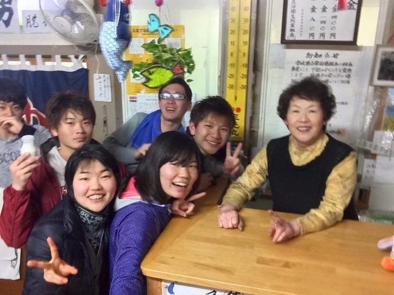 お腹が減れば大漁丸の菊地 幸江さんのところへ学生を連れて行きます。