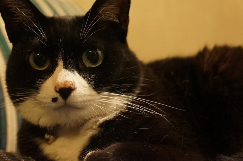 ほくろみたいな模様がめんこい「てん」ちゃんです。