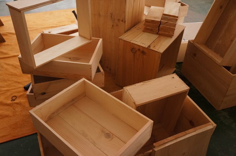 なんと今回、ひょんなことから地元風間浦村の畠山商店さんにご協力いただけることになりました!(すみません、ワイの圧迫感のせいで畠山社長が…)畠山商店さんは、いろんな木箱(りんご箱や、イカ箱など)や木製のパレットなどの製造販売をしてらっしゃいます。