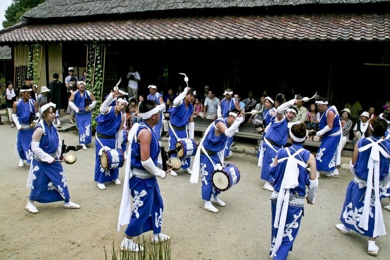 福島県の東南部に位置するいわき市には、古くから伝わる『じゃんがら念仏踊り』があります。8月の旧暦のお盆に新盆の家庭を廻り、太鼓と鐘のリズムに合わせて独特の節を唱えながら、仏さまを供養し家族を慰めるものとして、地域の青年団に受け継がれてきました。