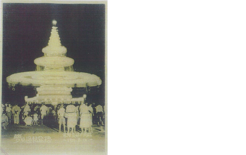 そして作られた櫓は、3層の大屋根を持ち、建て面積約200㎡、高さ約20メートルの2階建て、これに300個の電球が灯されるという豪華絢爛なものでした。