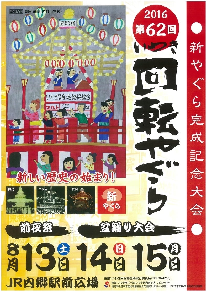 毎年8月13日から15日の3日間、「いわき踊盆」の中心にあるのが『いわき回転やぐら』です。この回転やぐらは60数年の間、地域の人々のこころを繋いできました。
