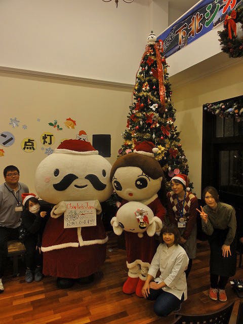 安渡館のスタッフの方のほかに、イルミネーション点灯式に来ていたむつ市のゆるキャラ、ムッシュムチュラン1世とマダム・ムチュリー、プリンセス・ムチュリンもサンタの衣装で協力してくれました!!とってもかわいらしくて子ども達にも大人気でした!!