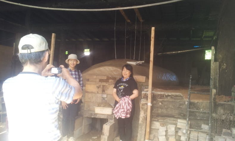 9/10むつ市民の見学を受け入れました。本窯作りは既に形が出来ており、粘土の乾燥を進めつつ微調整中です。見学者にはNPOが掲示板や写真で説明しました。
