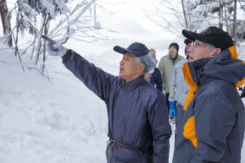▲まずは雪山へ栗の木を選定しに行きます