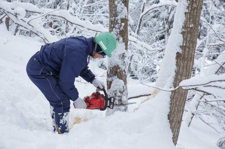 ▲木の選定が終わったら切り倒していきます