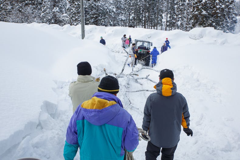 お祭り本番の日に一からご神木を作り上げることから、地域住民一人ひとりの協力が必須となります。ここまでの一連の作業には